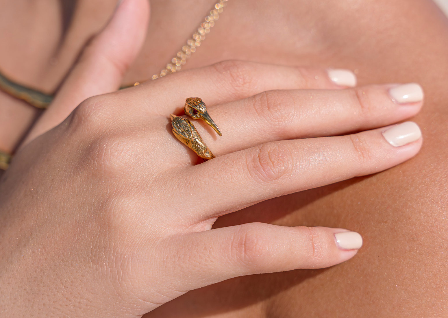 Piedras cuidadosamente seleccionadas aportan color, textura y vitalidad a cada joya, creando piezas únicas que capturan esencia, movimiento y elegancia natural.