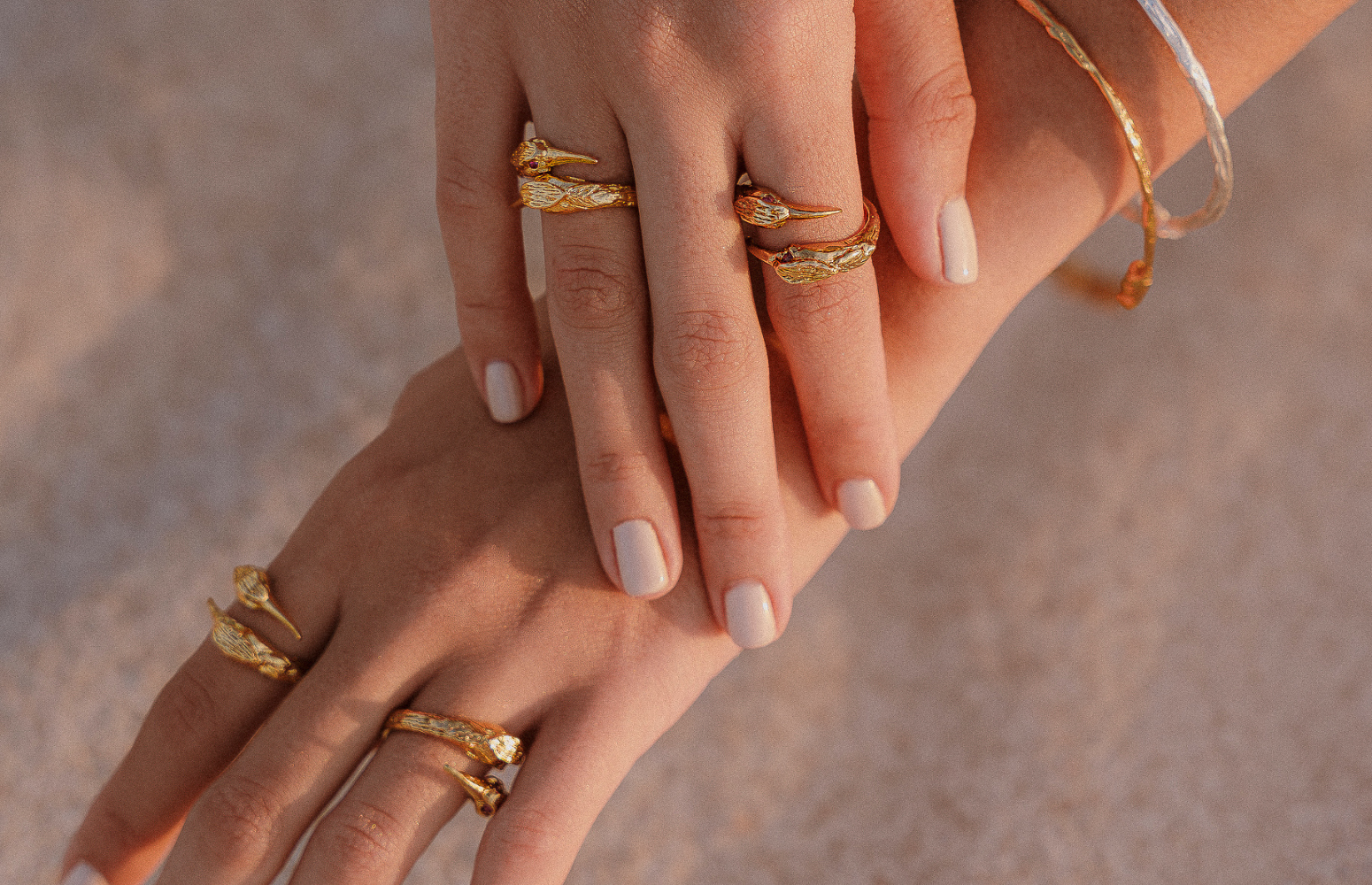Metales puros y brillantes se convierten en joyas delicadas, con formas orgánicas y detalles únicos que transmiten elegancia y personalidad.