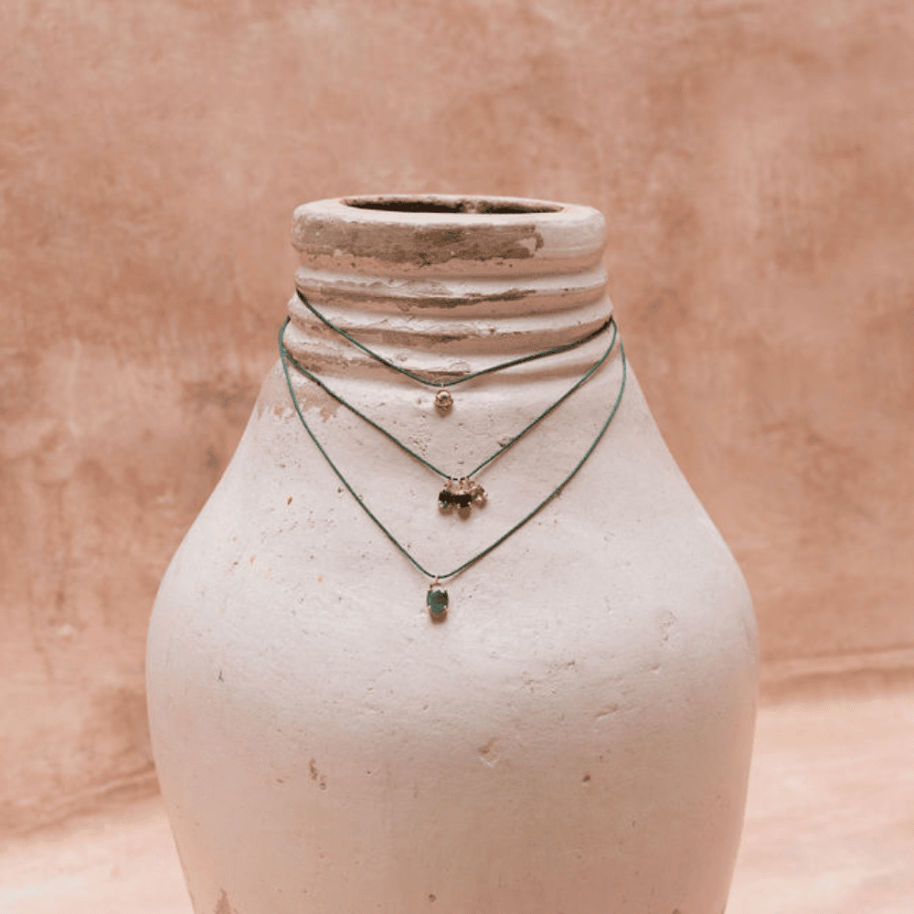 Creada con paciencia y detalle, cada pieza celebra la naturaleza y la artesanía, resultando en joyas únicas, frescas y espirituales.