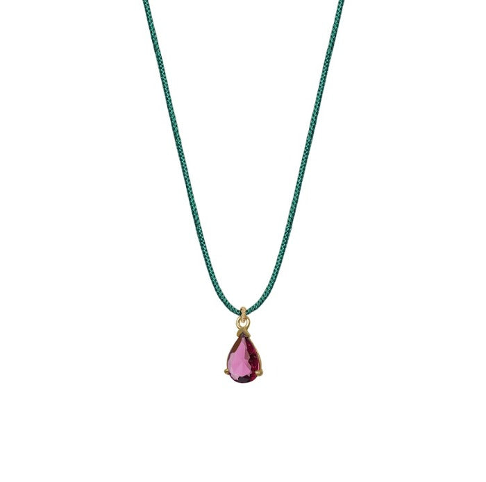 Dije de turmalina natural montado en oro amarillo 14k con hilo.