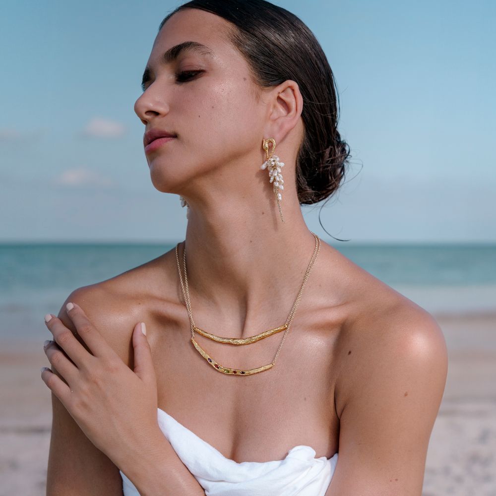 Piedras cuidadosamente seleccionadas aportan color, textura y vitalidad a cada joya, creando piezas únicas que capturan esencia, movimiento y elegancia natural.